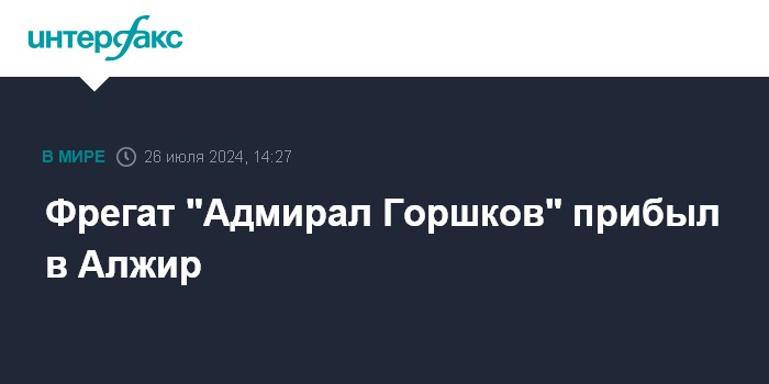 Москва. 26 июля. INTERFAX.RU - Отряд кораблей Северного флота во главе с фрегатом "Адмирал флота Советского Союза Горшков" совершил деловой заход в порт Оран Алжирской народной демократической республики, сообщает пресс-служба флота в пятницу.