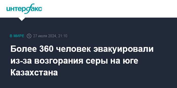 Более 360 человек эвакуировали из-за возгорания серы на юге Казахстана