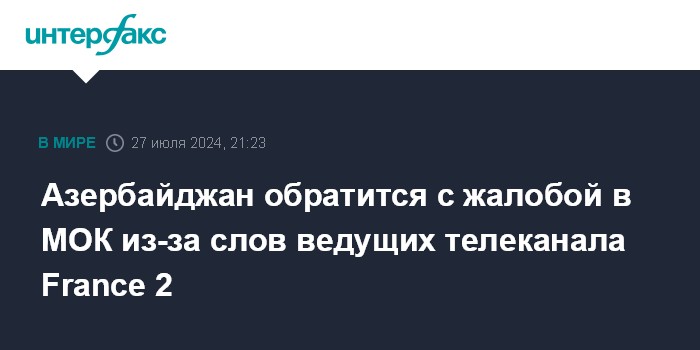 Азербайджан обратится с жалобой в МОК из-за слов ведущих телеканала France 2