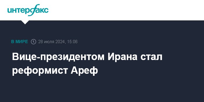 Москва. 28 июля. INTERFAX.RU - Президент Ирана Масуд Пезешкиан в воскресенье назначил политика-реформиста Мохаммадрезу Арефа вице-президентом, сообщает Mehr.