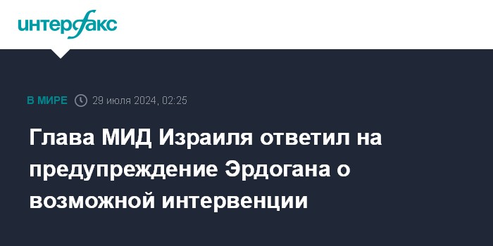 Глава МИД Израиля ответил на предупреждение Эрдогана о возможной интервенции