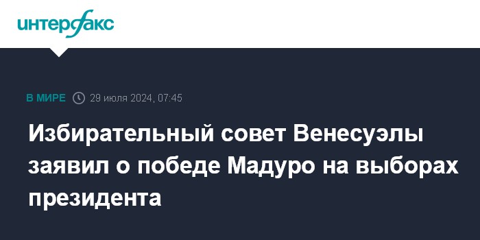 Москва. 29 июля. INTERFAX.RU - Действующий президент Венесуэлы Николас Мадуро одерживает победу на президентских выборах, которые состоялись в стране в воскресенье, заявил в ночь на понедельник председатель Национального избирательного совета Элвис Аморосо.