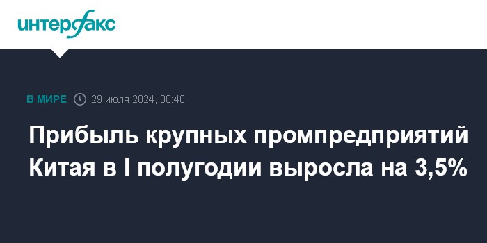 Прибыль крупных промпредприятий Китая в I полугодии выросла на 3,5%
