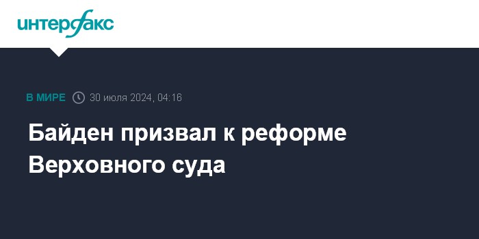 Москва. 30 июля. INTERFAX.RU - Президент США Джо Байден призвал к проведению масштабной реформы Верховного суда, а также введению ограничений на иммунитет президентов от федерального преследования, сообщают американские СМИ.