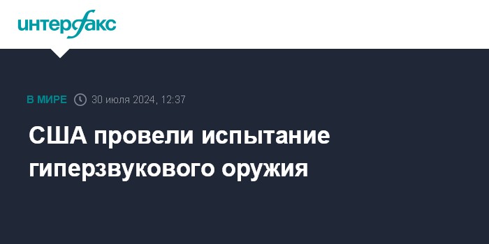 Москва. 30 июля. INTERFAX.RU - Армия и ВМС США провели на Атлантике испытание гиперзвукового оружия, сообщило издание The War Zone, ссылаясь на представителя Пентагона.
