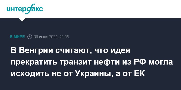 В Венгрии считают, что идея прекратить транзит нефти из РФ могла исходить не от Украины, а от ЕК