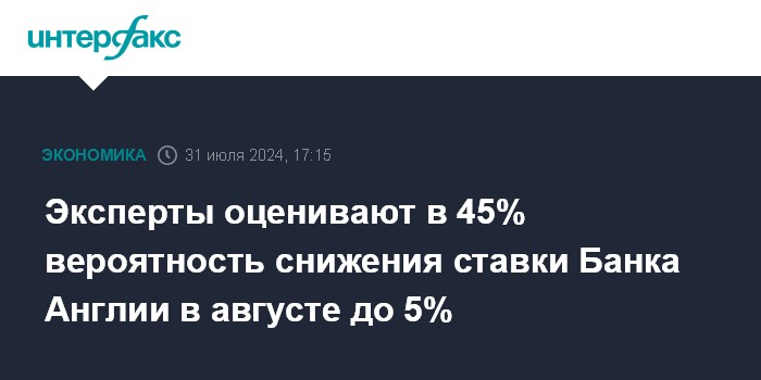 Эксперты оценивают в 45% вероятность снижения ставки Банка Англии в августе до 5%