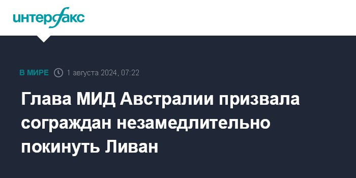 Москва. 1 августа. INTERFAX.RU - Министр иностранных дел Австралии Пенни Вонг в соцсетях распространило видеообращение, в котором привала австралийцев, находящихся в Ливане, незамедлительно покинуть страну, сообщают арабские СМИ.