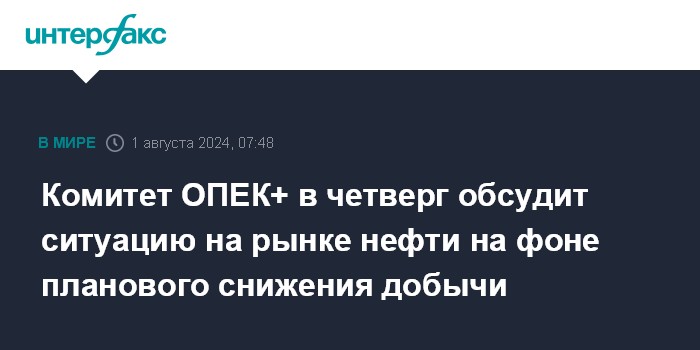 Комитет ОПЕК+ в четверг обсудит ситуацию на рынке нефти на фоне планового снижения добычи