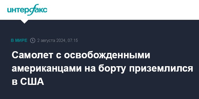 Москва. 2 августа. INTERFAX.RU - Самолет, на борту которого находятся освобожденные из заключения в России американские граждане, приземлился на объединенной базе Эндрюс, расположенной в городе Кэмп-Спрингс (штат Мэриленд), сообщают американские СМИ.