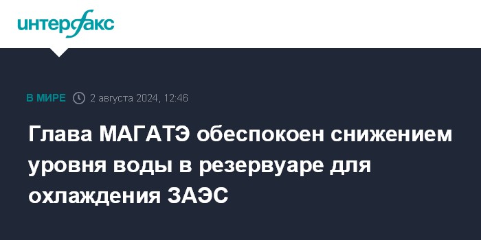 Москва. 2 августа. INTERFAX.RU - Снижение уровня воды в резервуаре для охлаждения Запорожской АЭС вызывает обеспокоенность, заявил в пятницу гендиректор МАГАТЭ Рафаэль Гросси.