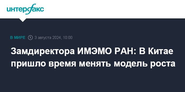 Замдиректора ИМЭМО РАН: В Китае пришло время менять модель роста