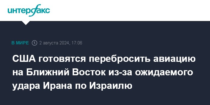 "Американские официальные лица заявили в пятницу, что США готовятся направить дополнительные боевые самолеты на Ближний Восток в ответ на угрозы Ирана и подконтрольных ему сил в секторе Газа, Ливане и Йемене атаковать Израиль в предстоящие дни в качестве мести за смерть главы политбюро ХАМАС Исмаила Хании", - информирует газета.