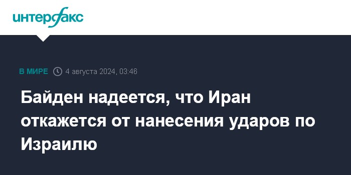 Москва. 4 августа. INTERFAX.RU - Президент США Джо Байден выразил надежду, что Иран не будет наносить удар по Израилю в ответ на убийство в Тегеране лидера движения ХАМАС Исмаила Хании.