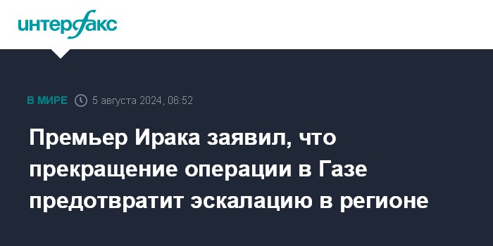 Премьер Ирака заявил, что прекращение операции в Газе предотвратит эскалацию в регионе