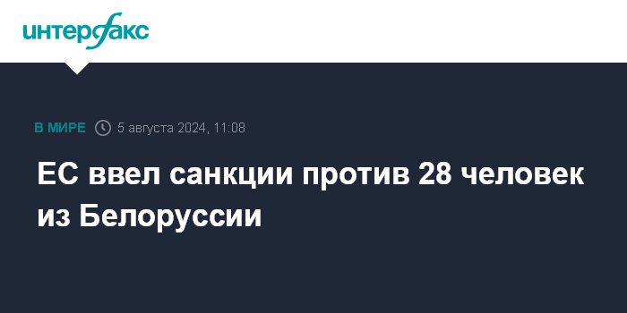 Москва. 5 августа. INTERFAX.RU - Евросоюз в понедельник включил в санкционные списки по Белоруссии 28 человек, включая представителей органов власти, сотрудников следственных органов и судов, сообщается в Официальном журнале ЕС.