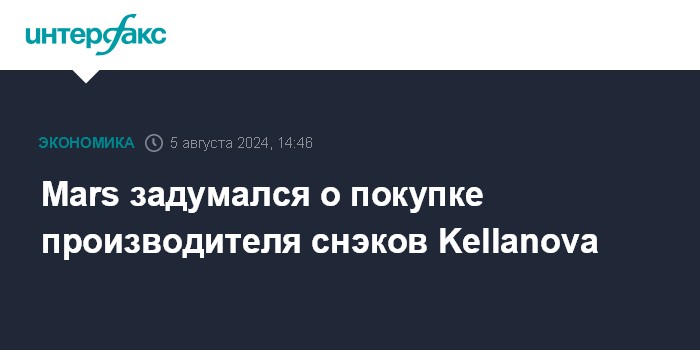 Москва. 5 августа. INTERFAX.RU - Американская Mars Inc. рассматривает возможность покупки производителя снэков Kellanova, выделенного из Kellogg Co. в 2023 году, сообщает Bloomberg со ссылкой на информированные источники.