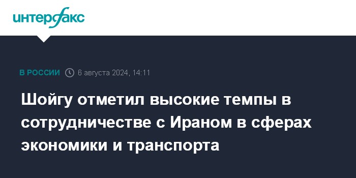 Шойгу отметил высокие темпы в сотрудничестве с Ираном в сферах экономики и транспорта
