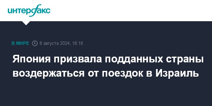 Москва. 6 августа. INTERFAX.RU - Министерство иностранных дел Японии во вторник призвало японцев отказаться от поездок в Израиль из-за эскалации напряженности на Ближнем Востоке, сообщают западные СМИ.