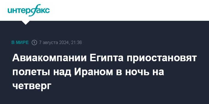 Авиакомпании Египта приостановят полеты над Ираном в ночь на четверг