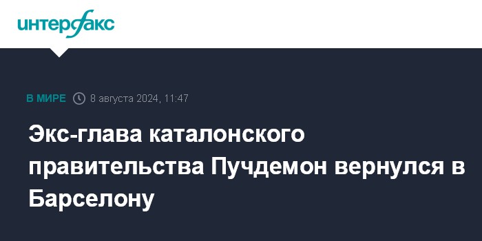 Москва. 8 августа. INTERFAX.RU - Бывший председатель женералитета (правительства) испанского автономного сообщества Каталония Карлес Пучдемон в четверг вернулся в Барселону.