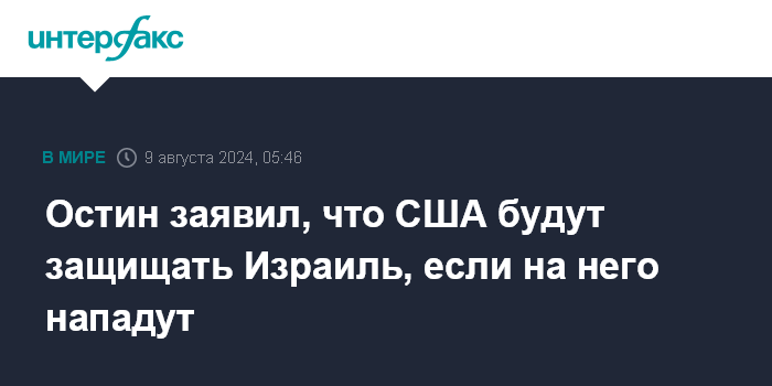 "Остин ясно дал понять, что, хотя война не является неизбежной и что деэскалация является предпочтительным курсом действий, США будут защищать Израиль, если на него нападут", - говорится в сообщении.