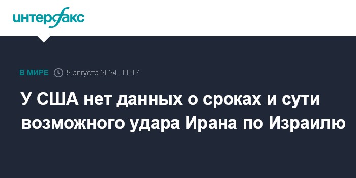 У США нет данных о сроках и сути возможного удара Ирана по Израилю