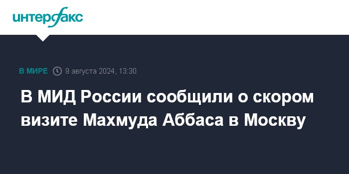 Москва. 9 августа. INTERFAX.RU - Глава Палестинской Национальный администрации Махмуд Аббас скоро посетит Москву, сказал журналистам замглавы МИД, спецпредставитель президента по Ближнему Востоку и странам Африки Михаил Богданов.