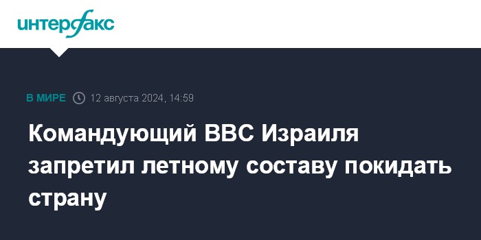 Москва. 12 августа. INTERFAX.RU - Командующий Военно-воздушными силами Израиля генерал-майор Томер Бар запретил летному составу покидать страну из-за возможного скорого удара Ирана по Израилю, сообщает в понедельник The Times of Israel.