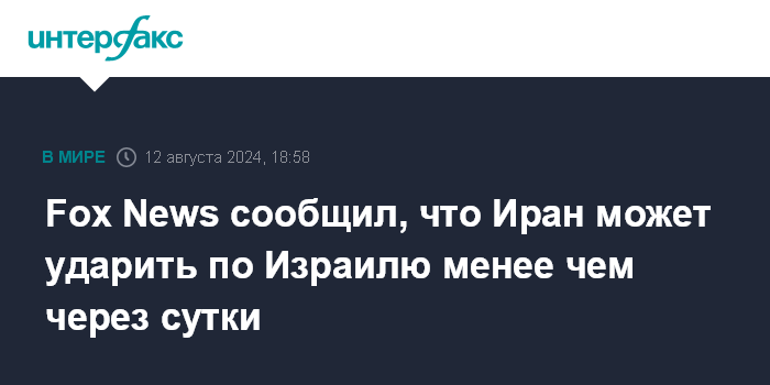 Москва. 12 августа. INTERFAX.RU - Атака Ирана на Израиль может произойти в течение ближайших суток, сообщает в понедельник Fox News со ссылкой на источники.