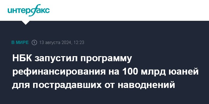 НБК запустил программу рефинансирования на 100 млрд юаней для пострадавших от наводнений