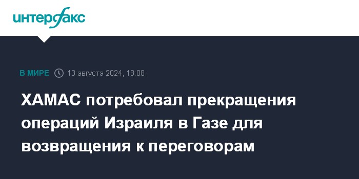 Ранее лидеры США, Катара и Египта призвали Израиль и ХАМАС возобновить 15 августа переговоры по соглашению о прекращении огня в секторе Газа. Посредники пообещали представить финальный вариант соглашения. По данным WSJ, на этой неделе ожидается прибытие в регион высокопоставленной делегации США.