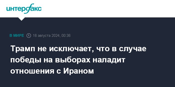 Москва. 16 августа. INTERFAX.RU - Экс-президент США Дональд Трамп предположил, что в случае победы на президентских выборах сможет наладить отношения с Ираном.