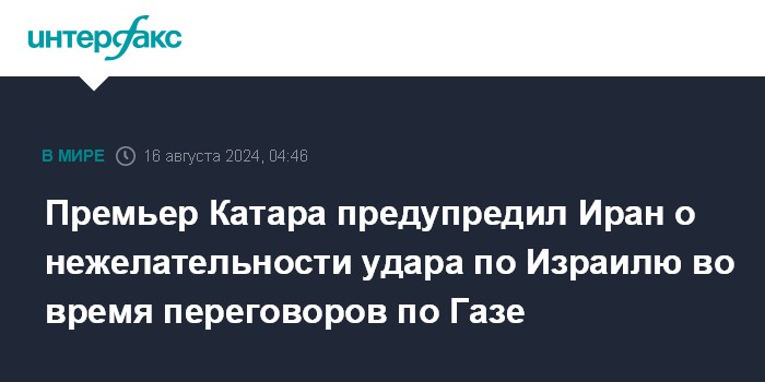 Премьер Катара предупредил Иран о нежелательности удара по Израилю во время переговоров по Газе