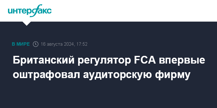 Британский регулятор FCA впервые оштрафовал аудиторскую фирму