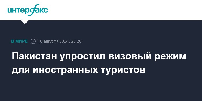 Москва. 16 августа. INTERFAX.RU - Власти Пакистана упростили визовый режим для туристов из 126 стран, в том числе России, сообщают местные СМИ.