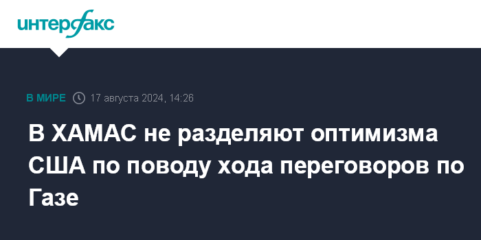 Предположения о том, что есть основания для оптимизма на переговорах он назвал иллюзиями. Представитель ХАМАС обвинил израильскую сторону в стремлении саботировать переговорный процесс, а США - в поддержке этих усилий.