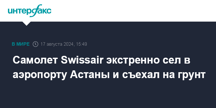 Самолет Swissair экстренно сел в аэропорту Астаны и съехал на грунт