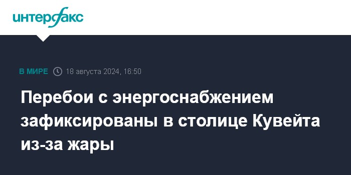 Москва. 18 августа. INTERFAX.RU - Власти Кувейта сообщили в воскресенье о перебоях с энергоснабжением в ряде спальных районов столицы страны Эль-Кувейта, информирует издающаяся в ОАЭ газета The National со ссылкой на кувейтское министерство энергетики.
