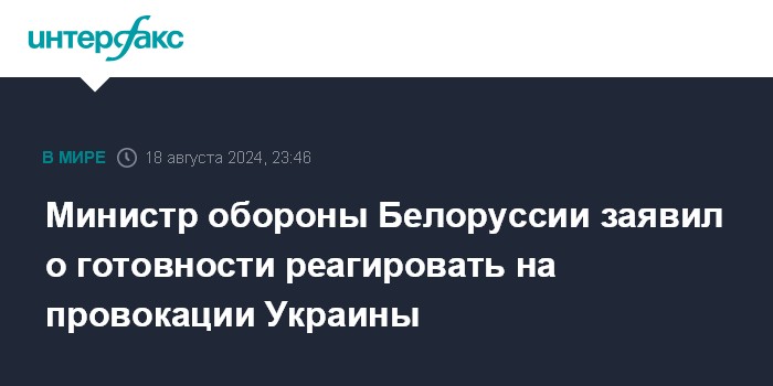 Министр обороны Белоруссии заявил о готовности реагировать на провокации Украины