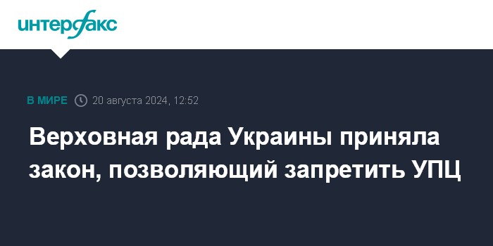 Москва. 20 августа. INTERFAX.RU - Верховная рада приняла в целом законопроект №8371 "О защите конституционного строя в сфере деятельности религиозных организаций", призванный запретить Украинскую православную церковь, сообщают национальные СМИ.