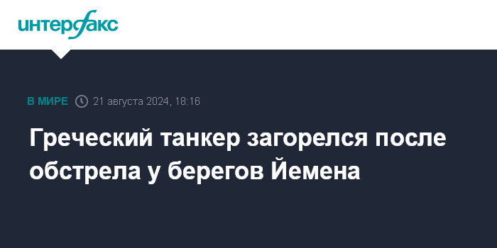 Москва. 21 августа. INTERFAX.RU - Пожар разгорелся на борту подвергшегося обстрелу греческого танкера в Красном море близ йеменского порта Ходейда, сообщает в среду Управление морских торговых операций Великобритании (UKMTO).