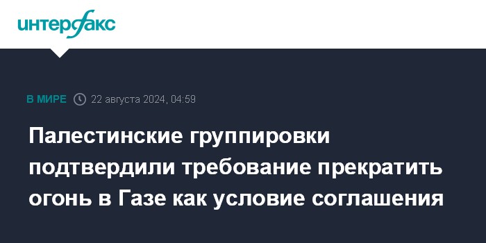 Палестинские группировки подтвердили требование прекратить огонь в Газе как условие соглашения