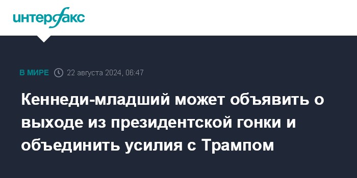 Кеннеди-младший может объявить о выходе из президентской гонки и объединить усилия с Трампом