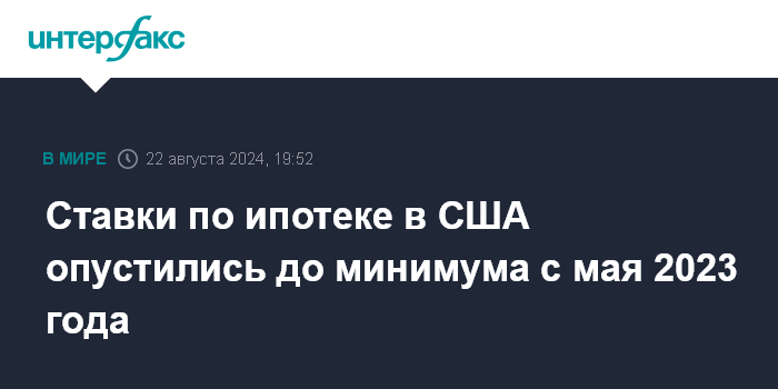 Ставки по ипотеке в США опустились до минимума с мая 2023 года