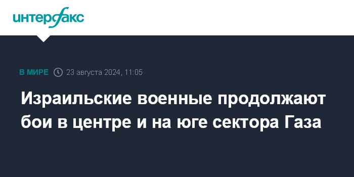 Москва. 23 августа. INTERFAX.RU - Армия обороны Израиля (ЦАХАЛ) за минувшие сутки ликвидировала десятки вражеских бойцов в центральной и южной части сектора Газа, говорится в заявлении в телеграм-канале израильских вооруженных сил.