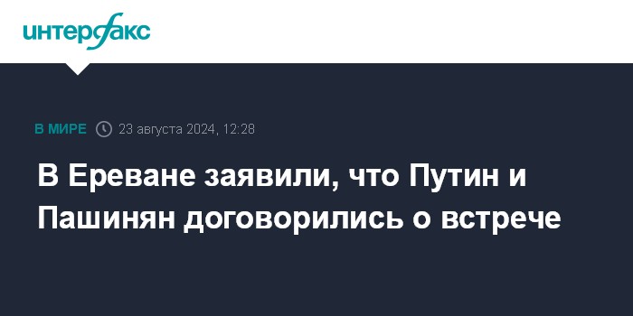 Москва. 23 августа. INTERFAX.RU - Премьер-министр Армении Никол Пашинян и президент России Владимир Путин в телефонном разговоре в пятницу договорились о проведении встречи, сообщила пресс-служба правительства Армении.