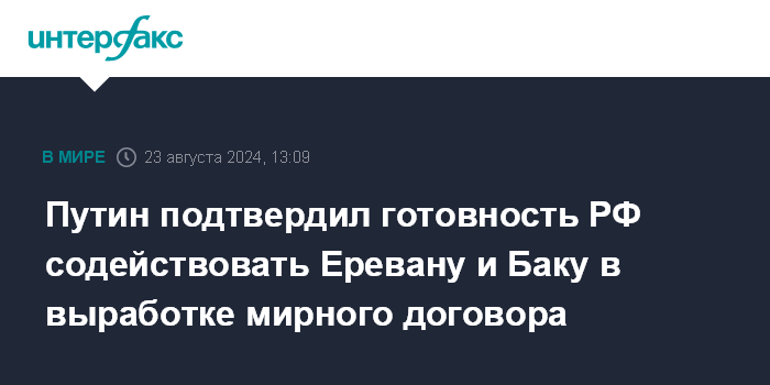 Путин подтвердил готовность РФ содействовать Еревану и Баку в выработке мирного договора