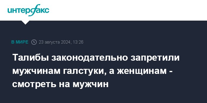 Талибы законодательно запретили мужчинам галстуки, а женщинам - смотреть на мужчин