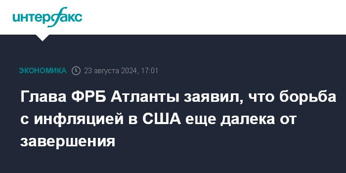 Глава ФРБ Атланты заявил, что борьба с инфляцией в США еще далека от завершения